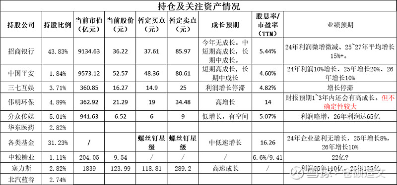 ///持仓股票梳理: