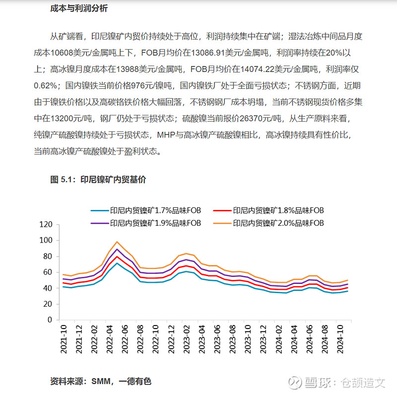 业绩预测:难点是新能源部分收益的预测。索性我们找到了一得qh分析师谷静2024年12月3日的分析。分析可高冰镍的平均利润率只有0.62%,即使考虑伟明投资工艺优势,降低成本,利润率达5%,远高于平均值,每吨利润约14000万美元*5%*7≈4900元。根据研报,伟明环保所占权益约4万吨,即创利约1.9亿。另外,镍产业链近几年预期供大于求,收益波动较大。整体来看,后续新能源产业链业绩可能没有想象那么好。但是伟明环保还在持续加大EPC建造和设备业务,相关业务因新能源项目还能持续提供几年的增长。综上财报上预计24年4季度预计6亿左右利润,24年总利润27亿。25年、26年使用机构研报预期利润分别为34亿和42亿。