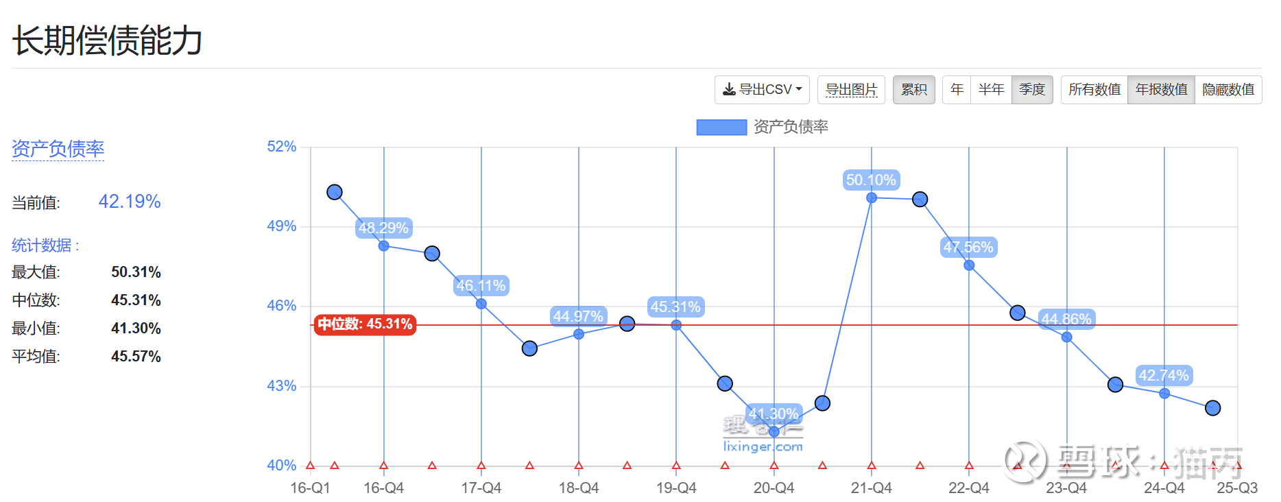 其中有息负债率27%,行业中位数在38%左右。