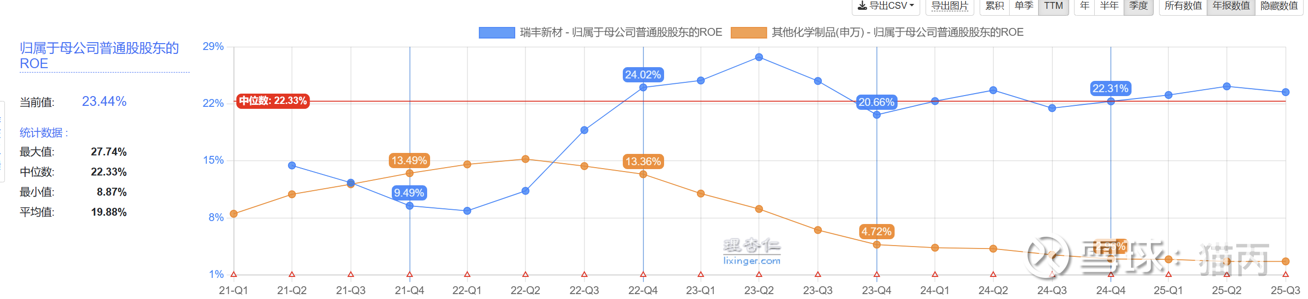 归属于母公司普通股股东的ROE当前23%,22年以来保持在22%以上,瑞丰新材2022年ROE显著提升至23.95%,主要源于净利润增速大幅超过净资产增速,背后的核心驱动因素如下:产品结构转型+海外市场爆发,营收利润高速增长公司推动单剂向复合剂战略转型,国内侧重高毛利复合剂销售,海外单剂与复合剂并行布局,2022年海外销售收入较上年提升31个百分点,海外客户放量成为核心增长引擎,全年营收同比增长181.77%、归母净利润同比增长192.53%,利润增速远超行业平均。技术突破与客户拓展抓住供应链机遇技术研发实现突破,通过多个级别汽机油、柴机油复合剂台架测试,核心客户准入不断取得突破;同时建立海外专业销售团队,深耕国际市场,抓住了全球供应链体系重建的机遇,快速实现客户突破与销量增长。
