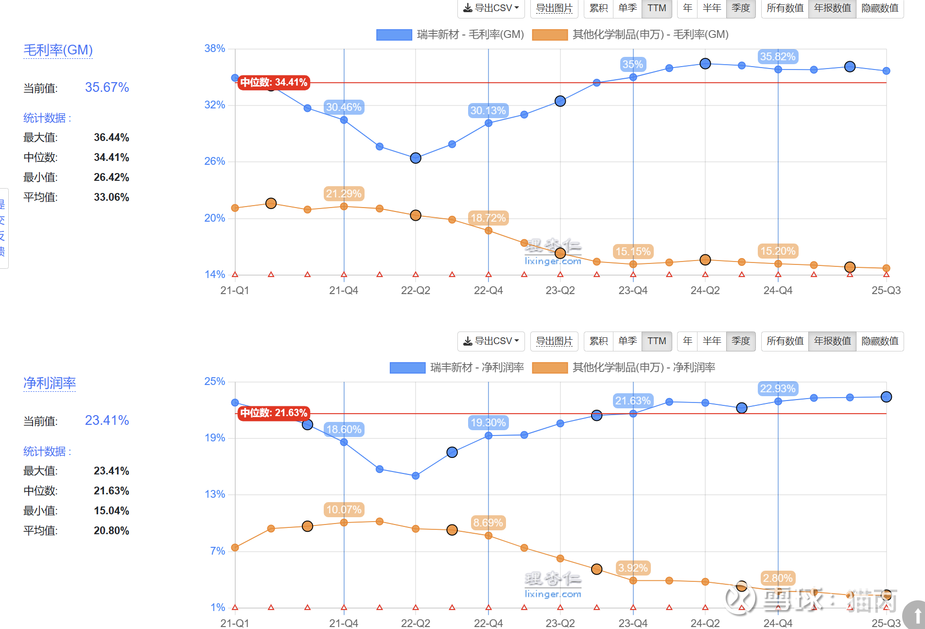 毛利22年以来30%以上,当前保持在35%,净利率23%,赚钱能力相当不错。