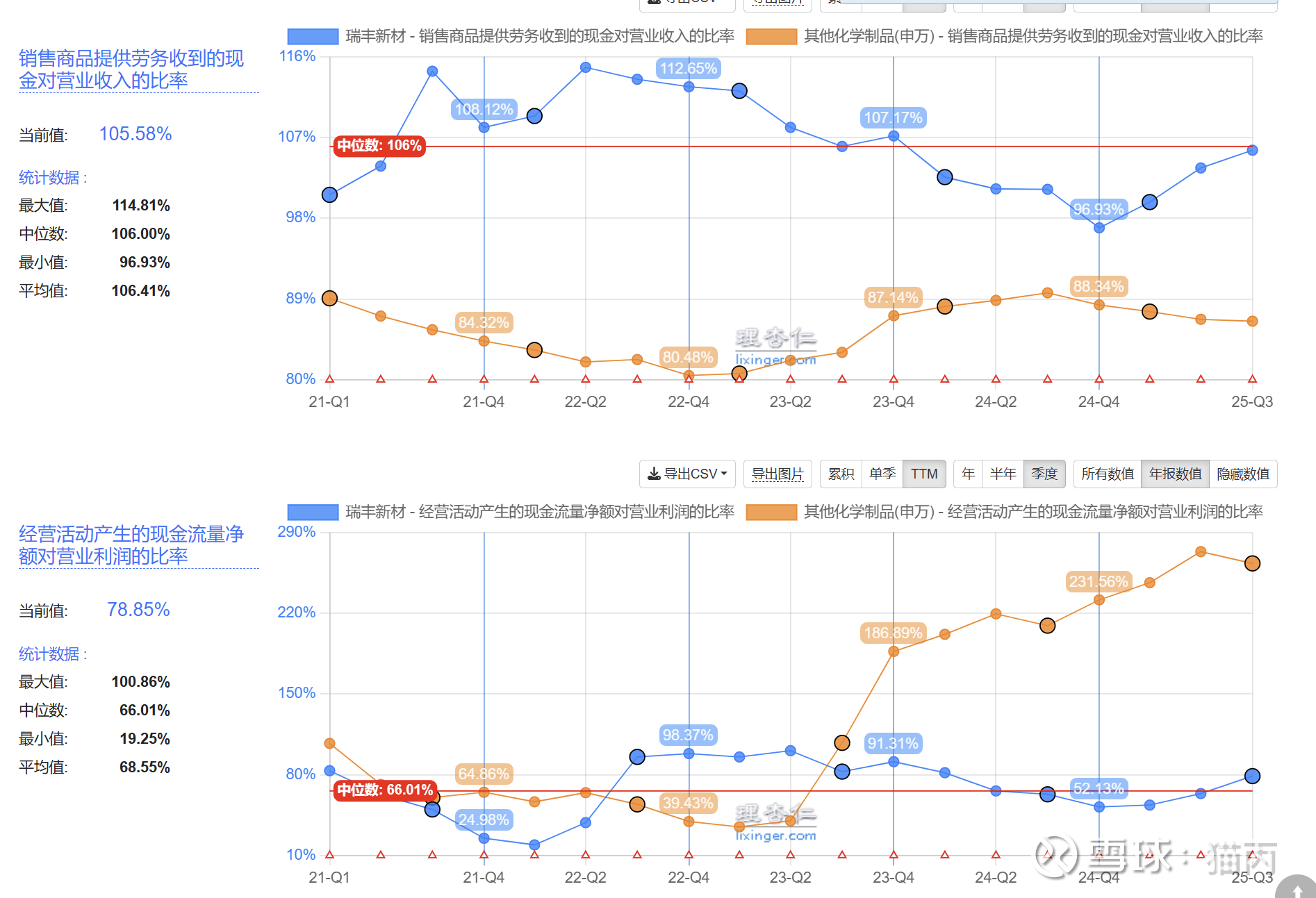 销售商品提供劳务收到的现金对营业收入的比率基本能达到100%以上,经营活动产生的现金流量净额对营业利润的比率中位数66%,有点低。