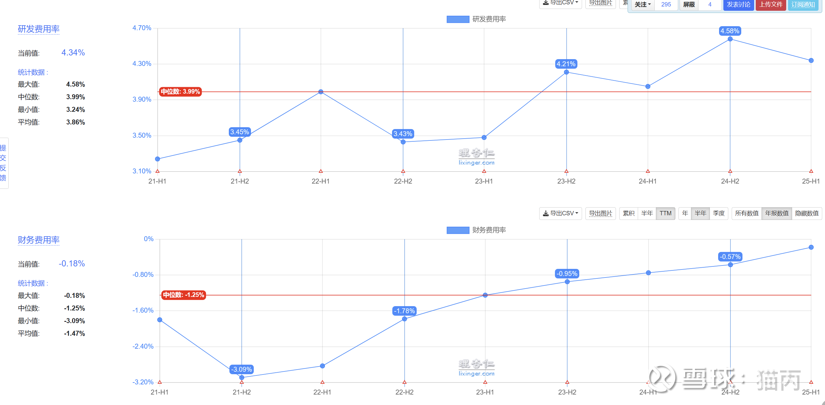 四项费用中,销售费用管理费用呈下降趋势,研发费用增加,财务费用增加(公司可能因业务扩张或资金安排调整,减少了高收益理财产品的配置,导致利息收入下降;市场利率波动也可能影响闲置资金的理财收益。)