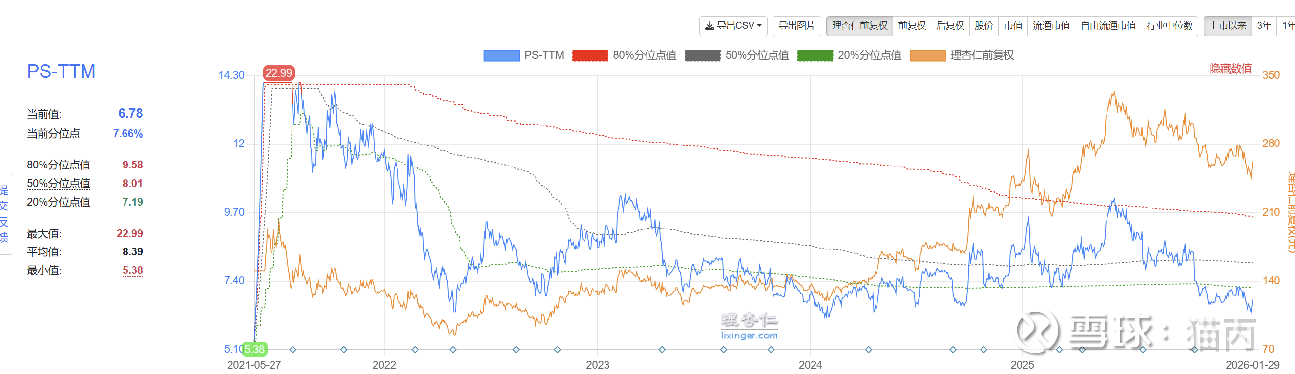 以上估值是未来五年营收年化增长率能够实现30%的情况下得出。增长率若不如预期,那么当前的股价不适合买入,考虑到消费提振,我个人觉得可以盯着下跌的时候买入,当前的股价低估,只是安全边际不大。