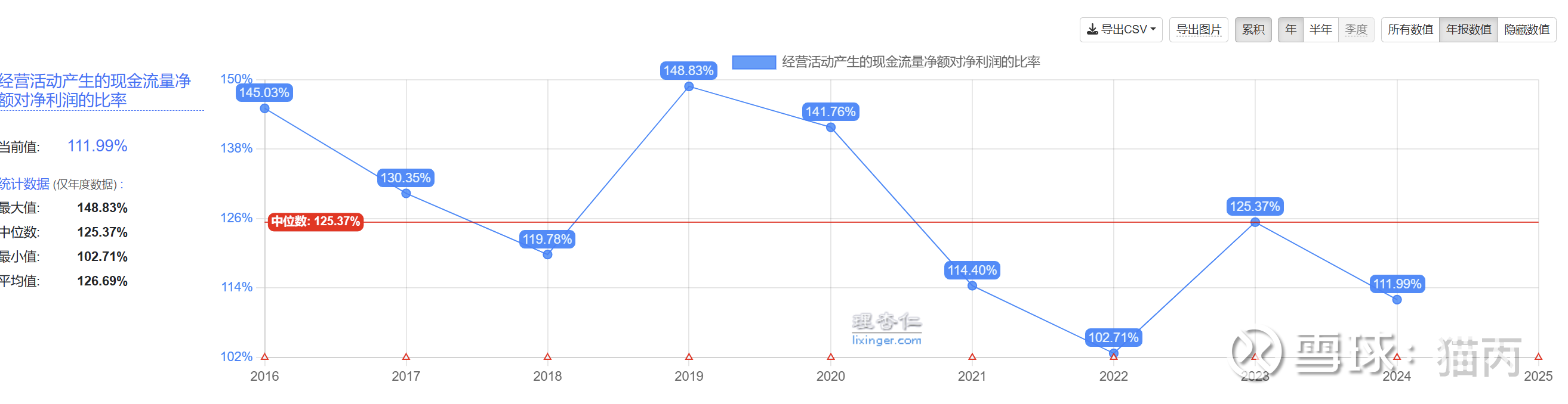 现金流情况,经营活动现金流对净利润的占比111%,净利润基本可信。