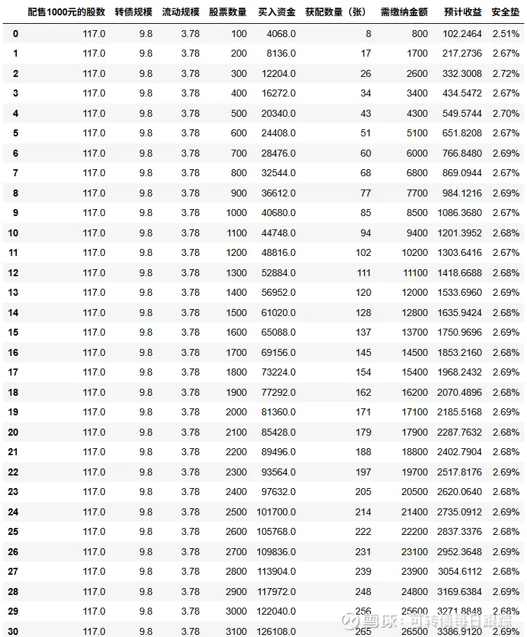 可转债配售数量(单位:手,1手=10张)=持有股票股数/117*10