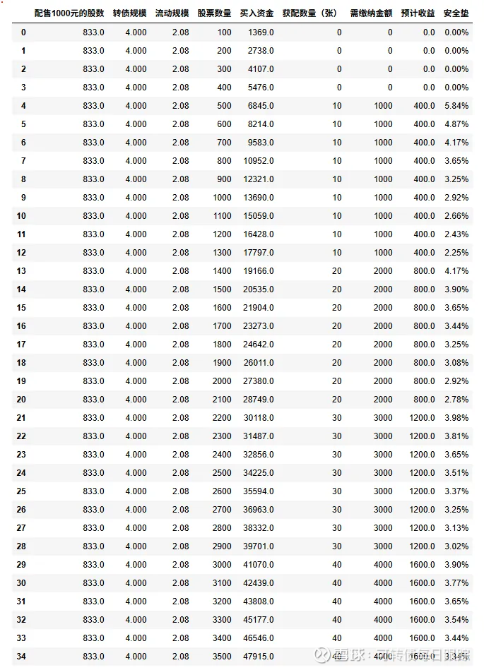 配售详情:表格中的安全垫数据偏保守