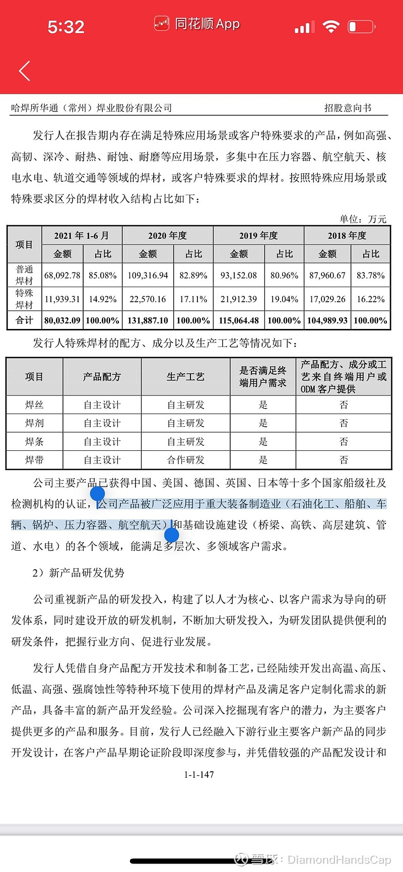 哈焊华通招股书第147页:公司产品被广泛应用于重大装备制造业(石油化工、船舶、车辆、锅炉、压力容器、航空航天)。商业航天或将成为公司发展新增长点。