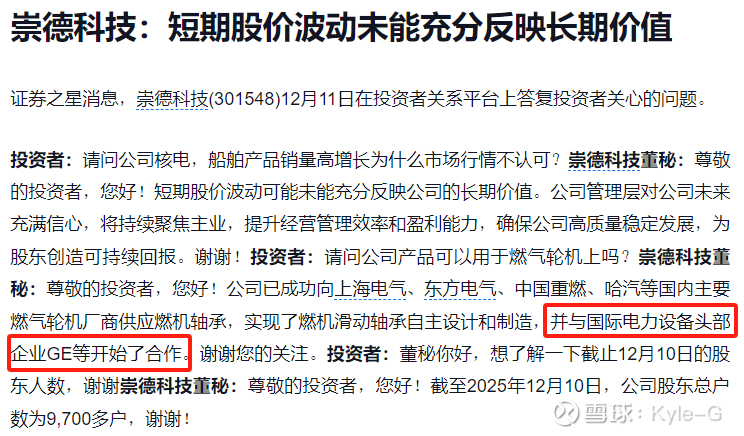 崇德科技凭借燃气轮机轴承国产化核心地位和核电/风电技术协同优势,成为能源装备升级赛道稀缺标的。短期看数据中心电源订单放量及GEV产业链共振,中期看核电项目交付加速及风电轴承替代渗透,长期看国际化布局驱动业绩爆发。