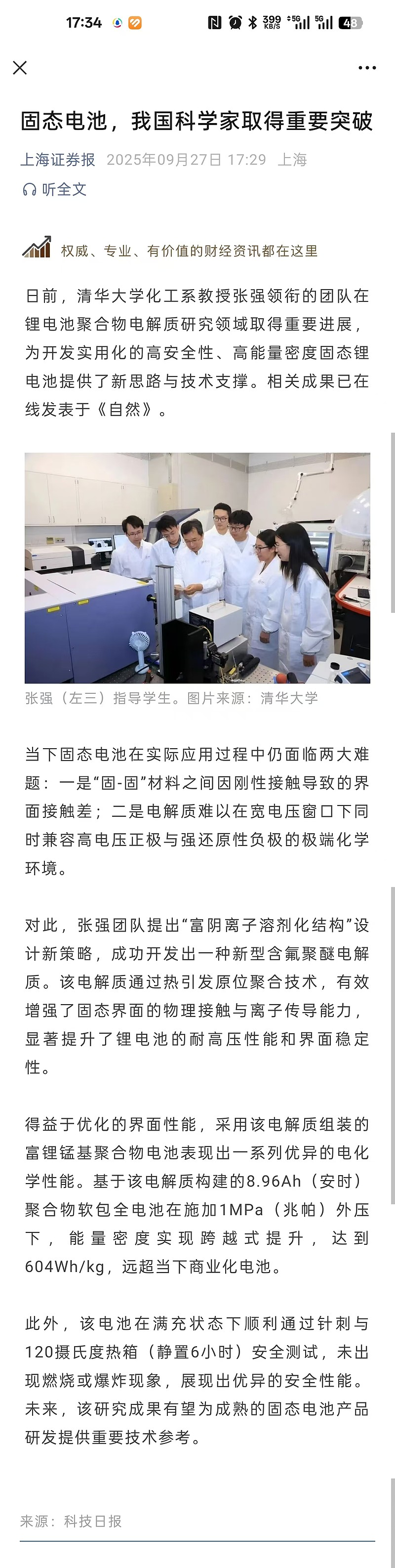需注意的是,固态电池技术路线仍存在不确定性(如硫化物、氧化物路线的竞争),且从实验室成果到大规模产业化仍需时间。但从当前布局看,星源材质在聚合物路线的技术积累和商业化进度,使其具备从该领域突破中受益的能力。