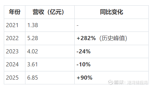 把时间轴拉长到2021-2025年,文远知行的营收轨迹是一个标准的"倒V":