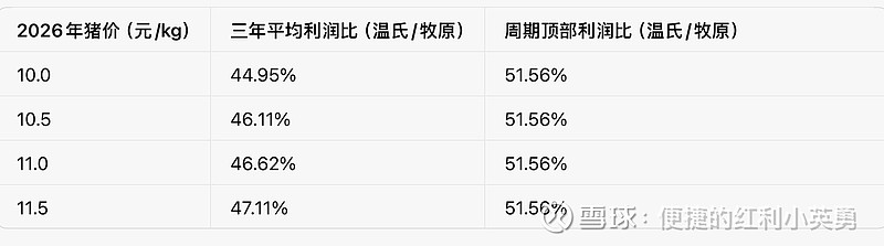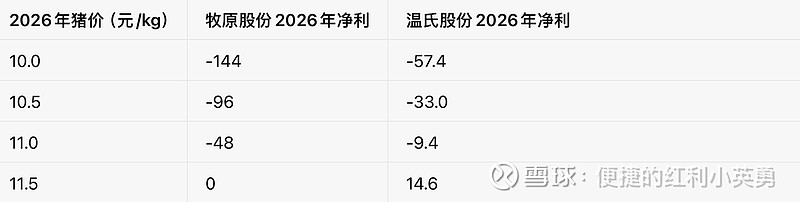 3. 猪价情景:2026年生猪全年均价分为 10、10.5、11、11.5元/kg 四档。