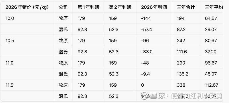 上周牧原发布财报,2025年利润表现亮眼。在四季度进入周期底部后,牧原依旧实现了较好收益。结合温氏已发布的业绩预告,以及两家公司2026年成本目标,对2026年净利润及三年滚动利润进行测算对比。
