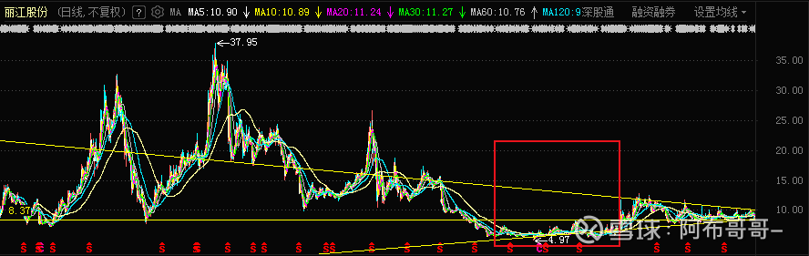 这张图是丽江旅游上市以来的走势,红框中是疫情时期的走势,我第一次建仓就是在红框区域内完成的。