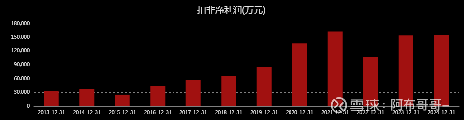 图中除了疫情那几年利润下降,其余年份利润都差不多,说明这不是一只成长股。是一只类债券股,类债券股主要特征就是分红稳定,低波动率。股票价格多个低点的连线一般就是该股票的价值区域(市场共识的结果),因为利润长期变化不大,企业的价值也变化不大,反映到股价上,更多的就是情绪的变动。这种股票做波段是最完美的标的了。