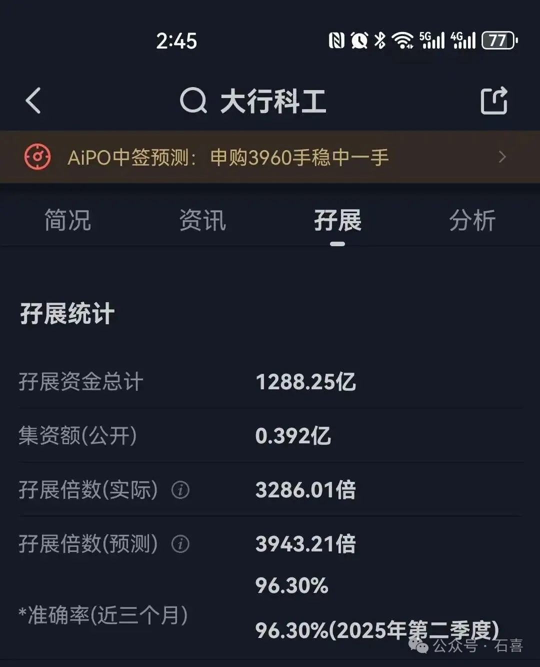 大行科工此次公开募资额仅0.39亿,一手金额4950元,总共7920手。