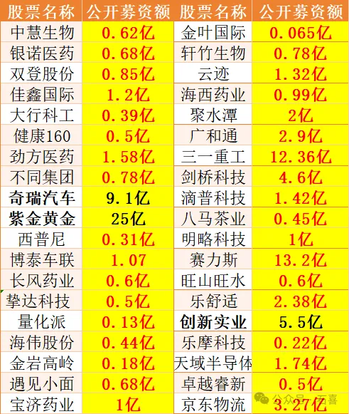 新规后新股的公开集资额