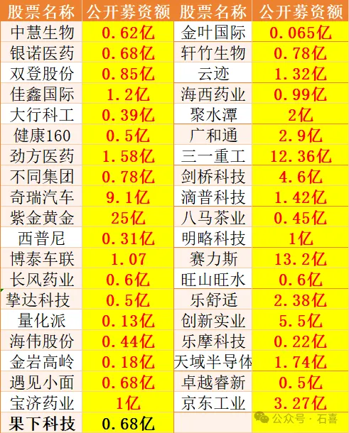 果下科技发行后市值为102亿港元,集资额为6.8亿,公开集资额为0.68亿,这个集资额在新规后的榜单中处于中间位置。