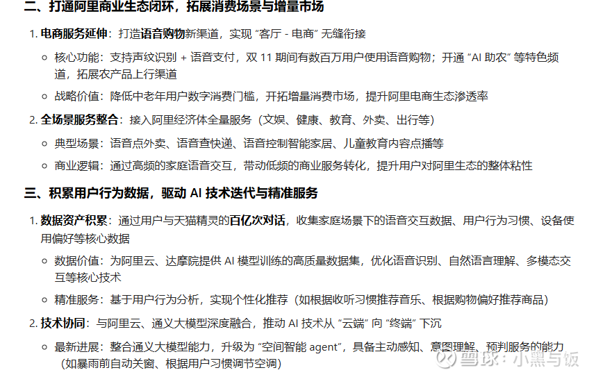 市场居然忽视了一个这么重要的语音入口.畅享一下未来,agi时代你在客厅里玩着手机,看着电视。对天猫精灵说给我点份外卖,帮我买个什么机票,制定一个旅游行程,这一切的一切交互都是通过天猫精灵这个语音入口接入到中台的.那么这个语音入口是不是就是未来增量无限大的硬件设备?如果未来把这个音箱便携化做成耳机或者手环类似的便携设备.是不是你就有了一个像钢铁侠一样的智能体管家?你无论在做什么事,都只要随口吩咐一句。千问智能体就能帮你把这个事情做好….