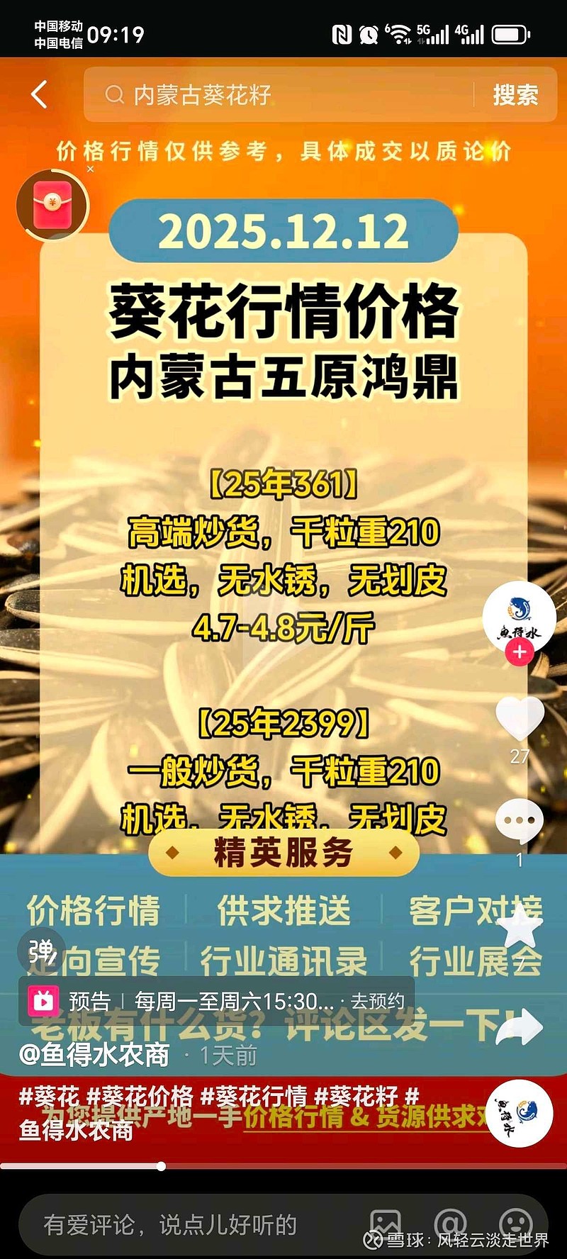 现在高端361都降到4.7-4.8了吗?有懂葵花行情的吗?这个价格是否真实?