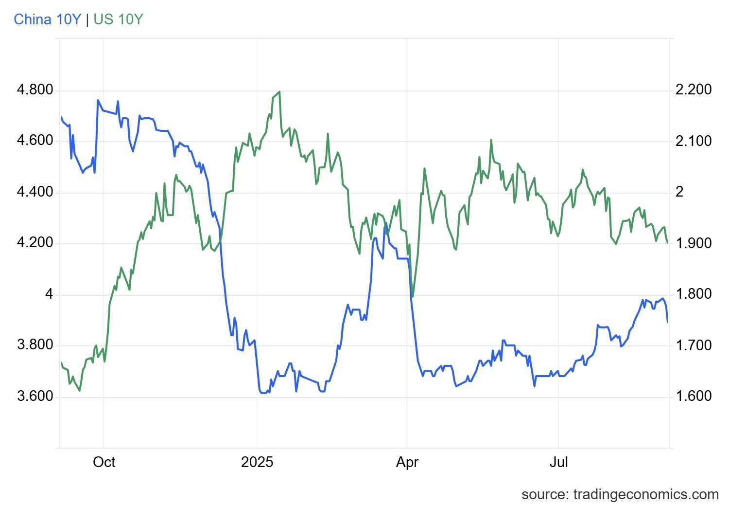 截至9月3日,中国二年期国债收益率为1.39%,中国十年期国债收益率为1.80%。