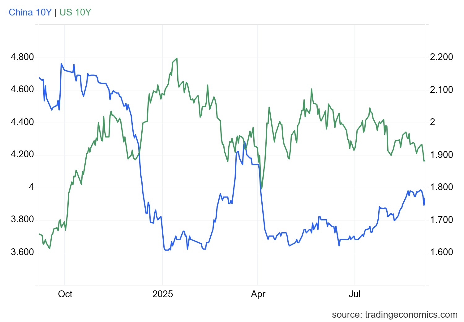 截至9月4日,中国二年期国债收益率为1.40%,中国十年期国债收益率为1.81%。