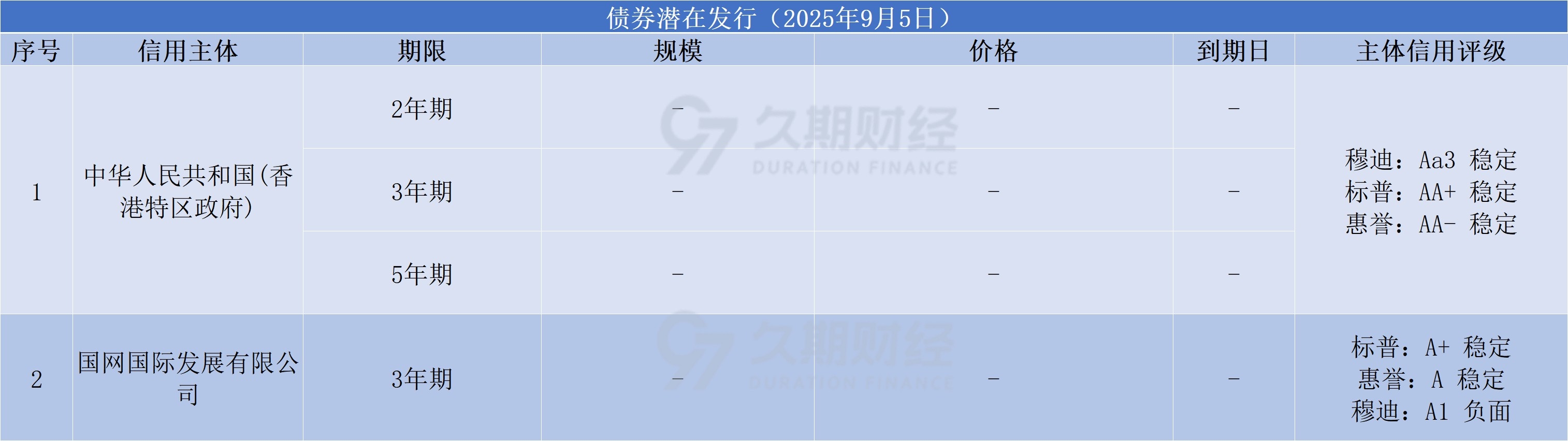 今日,一级市场,香港特区政府拟发行多系列多币种数码原生债券,共1家潜在发行,共1家公司发行: