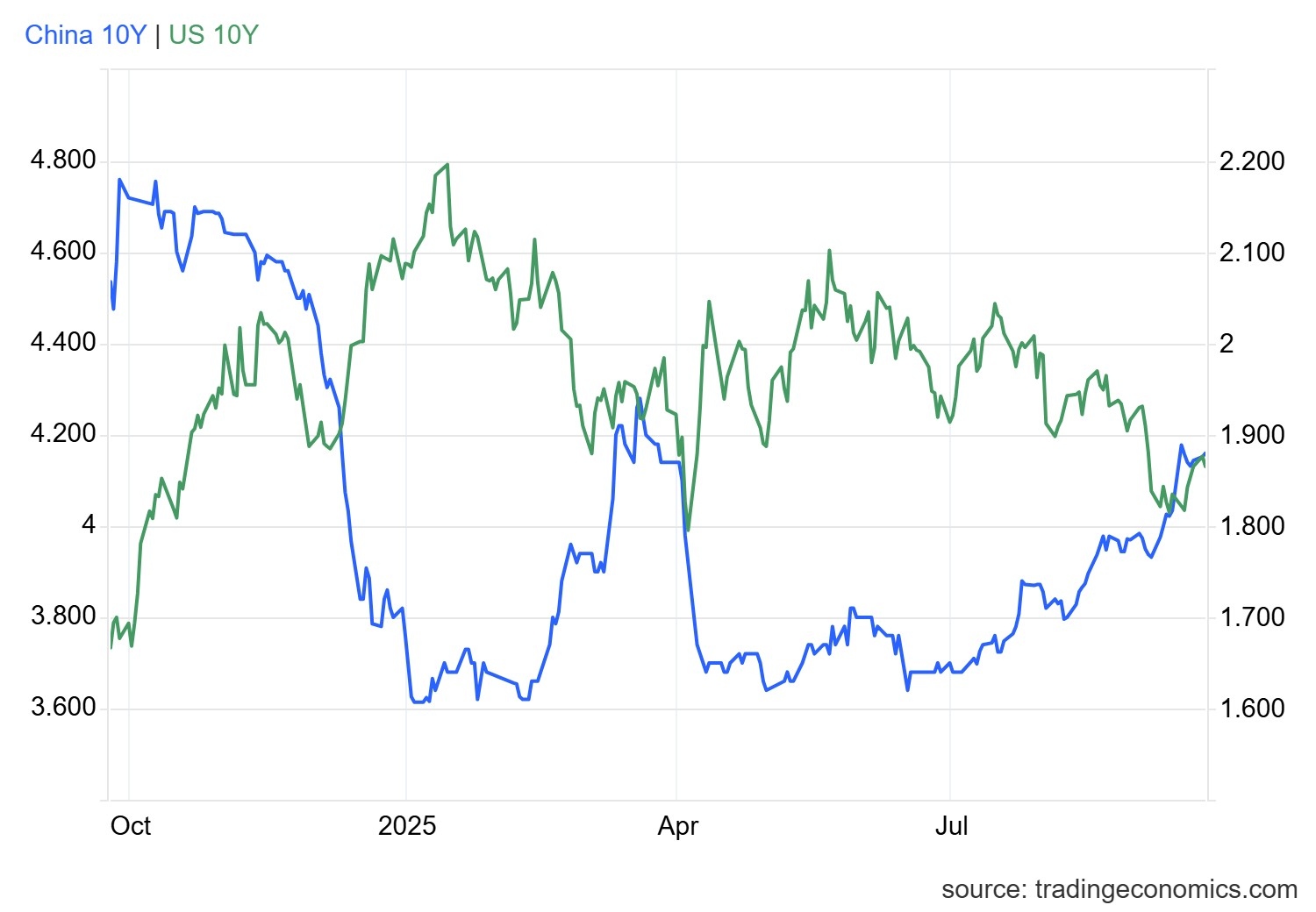 截至9月22日,中国二年期国债收益率为1.49%,中国十年期国债收益率为1.86%。