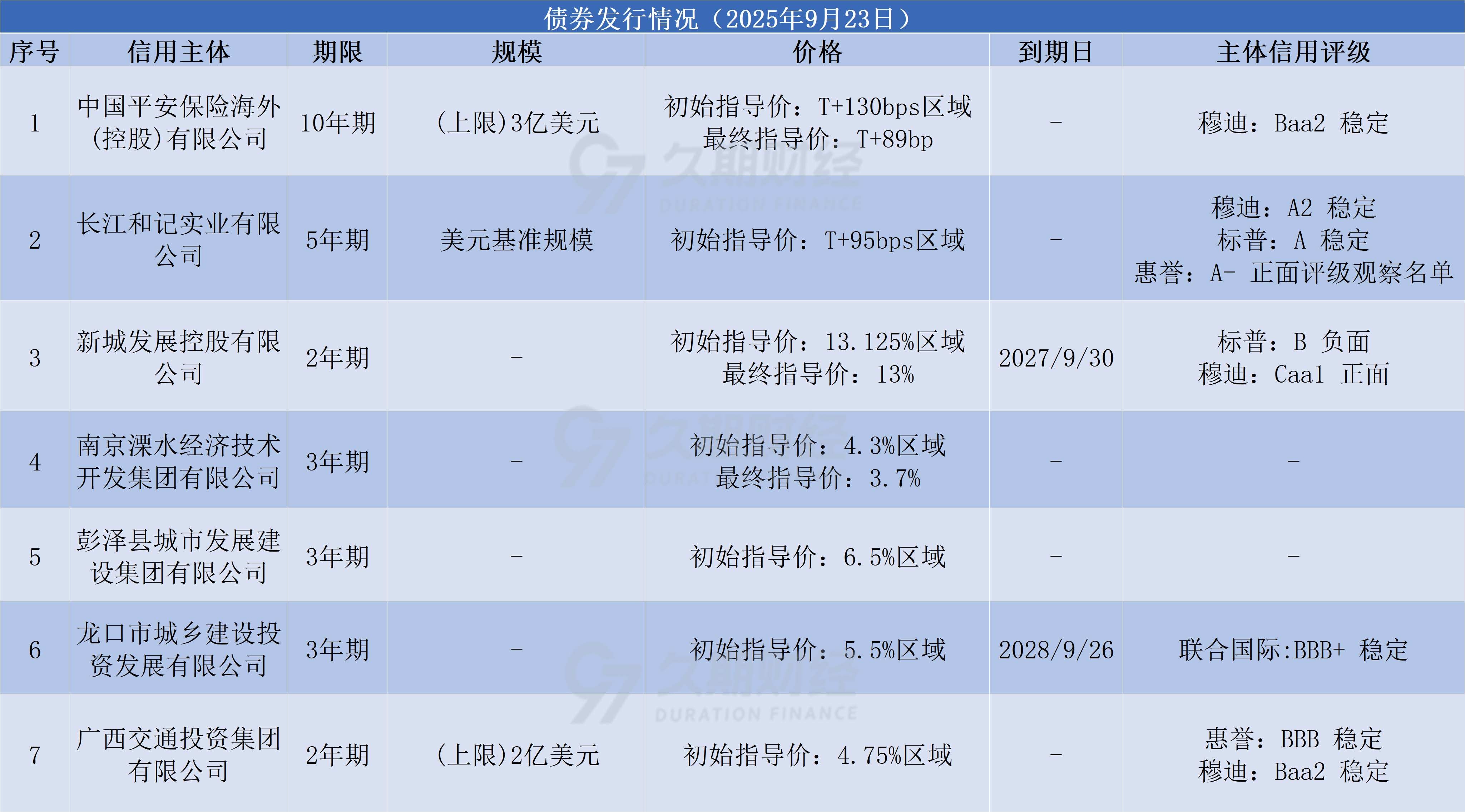 新城发展(01030.HK)发布公告,公司全资子公司新城环球有限公司建议进行由公司及新城控股担保以美元计值的优先担保票据的国际发售,并将向机构投资者开展一连串推介会。发行人及公司拟将建议票据发行所得款项净额用于偿还现有债务及用于一般企业用途。相关美元债: