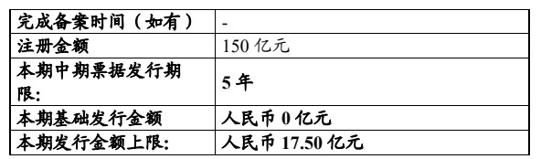 本期票据注册金额150亿元,发行期限5年,本期基础发行金额人民币0亿元,本期发行金额上限人民币17.50亿元,用于偿还发行人“22新城控股MTN003”债务融资工具本金。