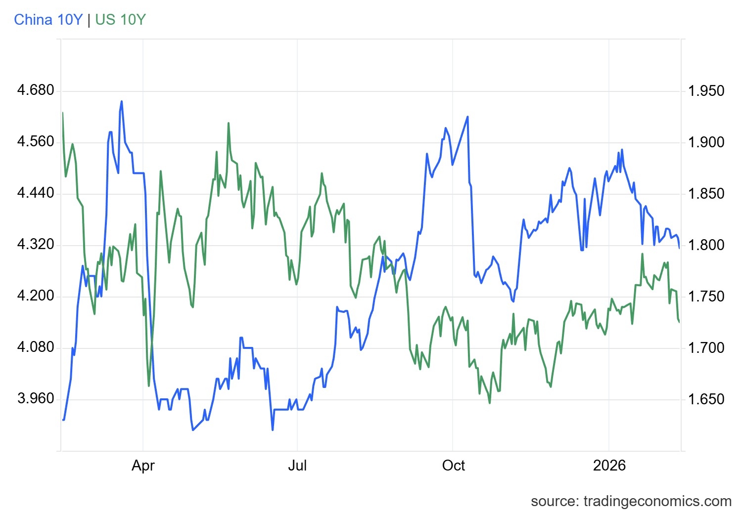 截至2月10日,中国二年期国债收益率为1.36%,中国十年期国债收益率为1.81%。