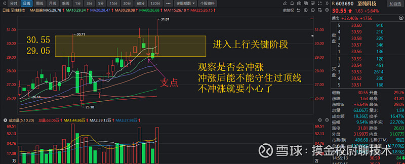 这个顶部区域只是其中一道岭线,前面还有一座座大山,所以就算上行预期也会大打折扣,很多时候还得走一步看的。$至纯科技(SH603690)$