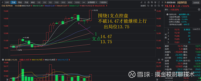 围绕1支点控盘,不破14.47才能继续上行,出局位13.75。