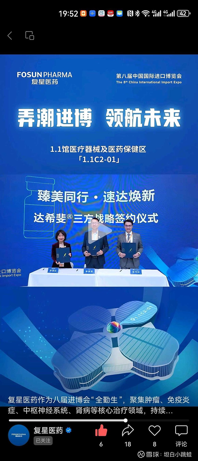 $复星医药(SH600196)$ $复锐医疗科技(01696)$ 铸就"美丽供应链":复锐医疗科技携手万邦医药、上药康德乐于进博舞台共启达希斐®物流合作签约仪式