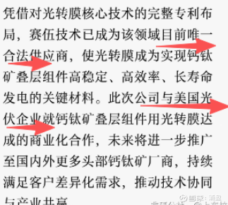 而赛伍的本身就有HJT电池光转膜,加上前段时间,应用于钙钛矿叠层电池的光转膜首批量产交付,且是该领域目前唯一合法供应商,并与美国光伏公司达成商业化合作。无论HJT电池路线,还是钙钛矿叠层电池路线,赛伍技术都可以提供光转膜。