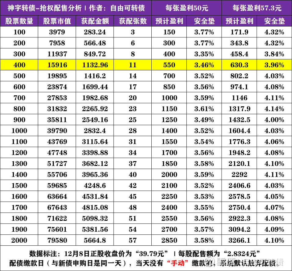 一手党:12月10日当天收盘后持有400股“神宇股份”的股票,可以获配11张可转债。