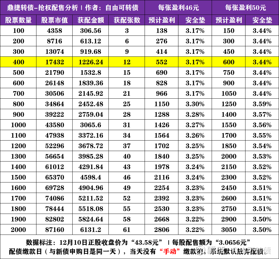 一手党:12月12日当天收盘后持有400股“鼎捷数智”的股票,可以获配12张可转债。