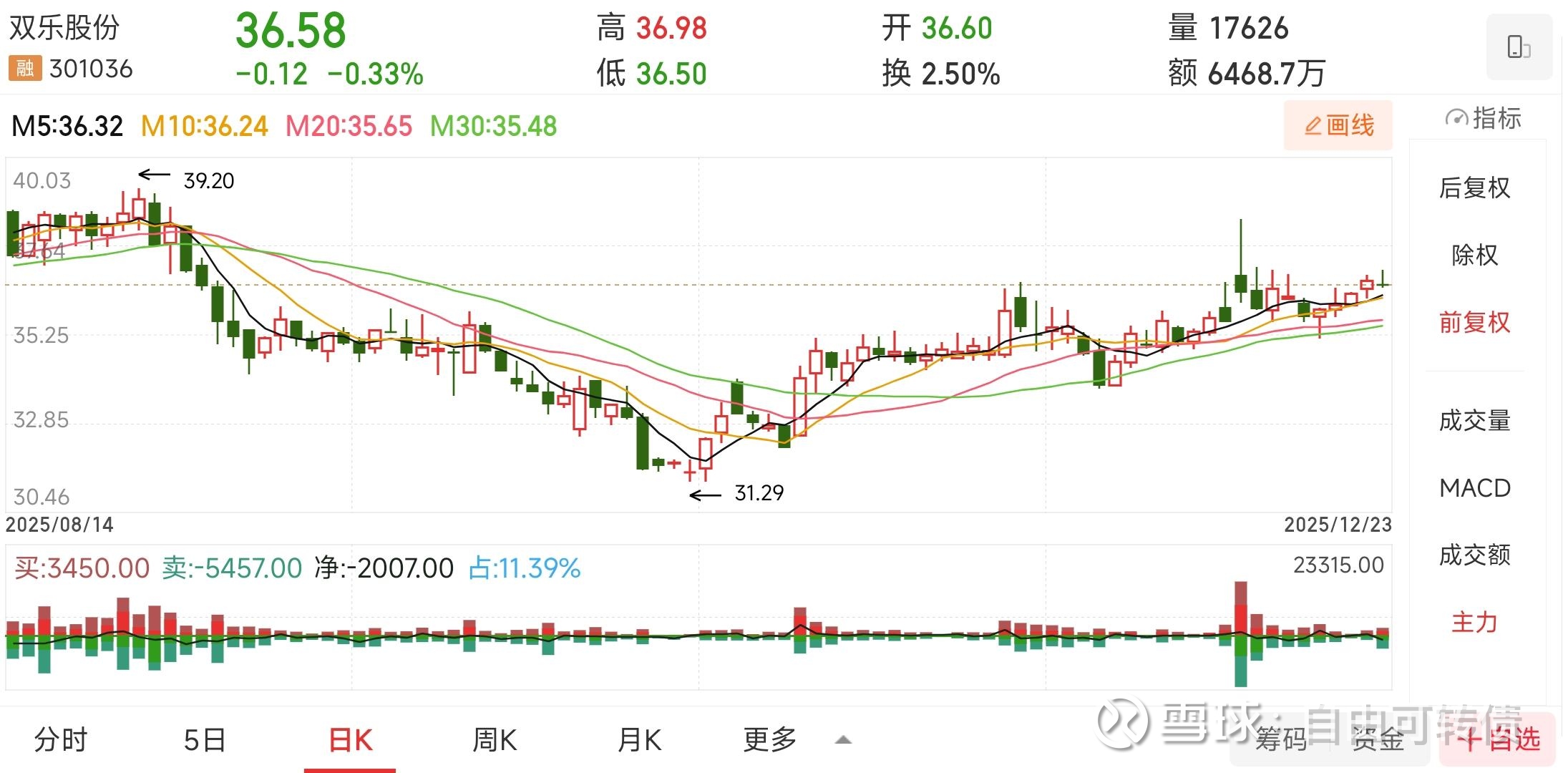 股权登记日:12月25日(收盘需持股) 配债缴款日:12月26日(股票可卖出) 配债缴款日当天,持有的股票开盘后可以直接卖出,卖出后的资金可以直接用于配债缴款。 配售简称:双乐配债|配售代码:381036