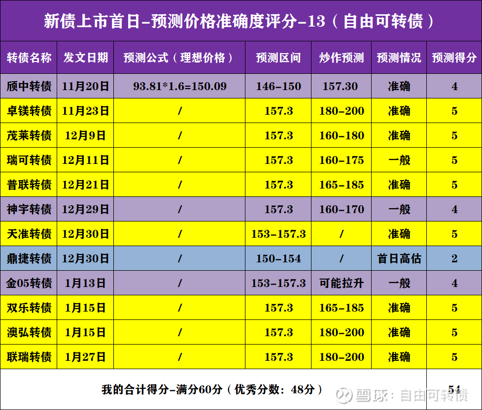 近期预测准确度:中规中矩,谨慎参考。 预测准确度评价权重:最高权重为转债上市当天最高价,第二权重为上市当天收盘价与其他。