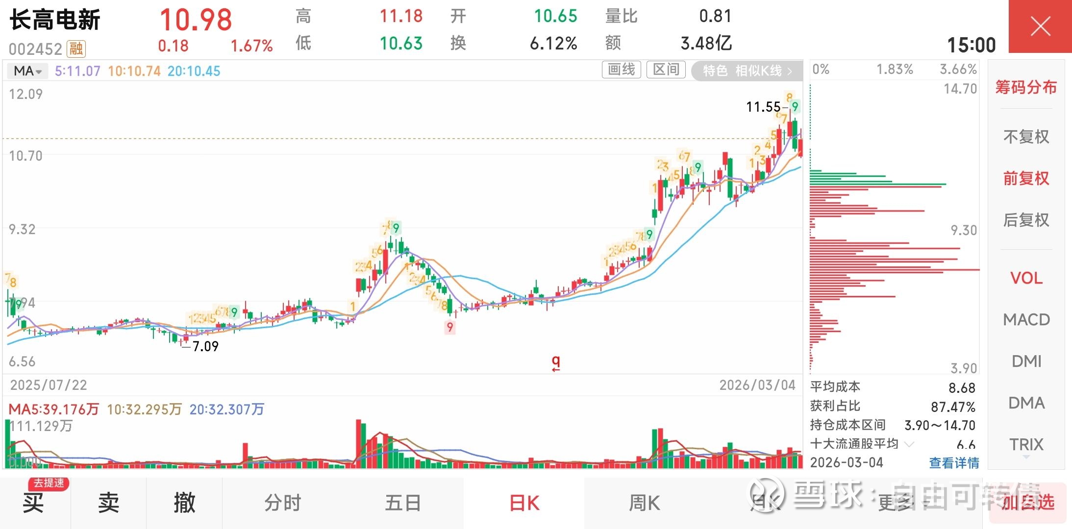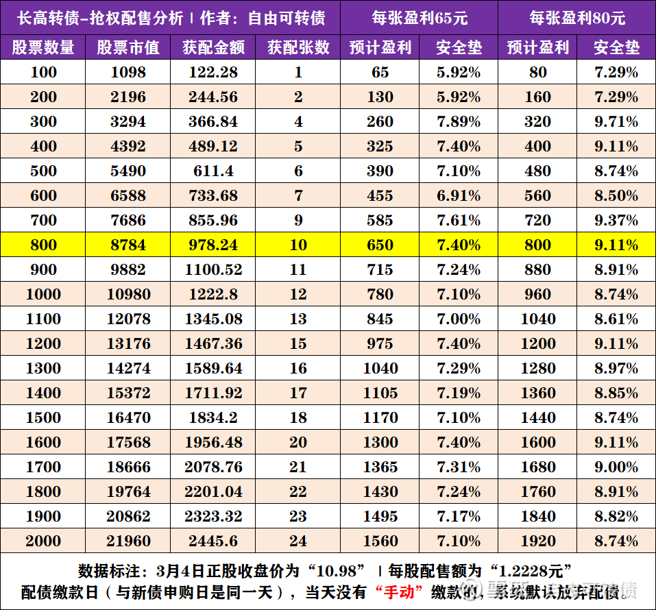 一手党:3月6日当天收盘后持有800股“长高电新”的股票,可以获配10张可转债。(其中第10张不是满配,有概率配不上)