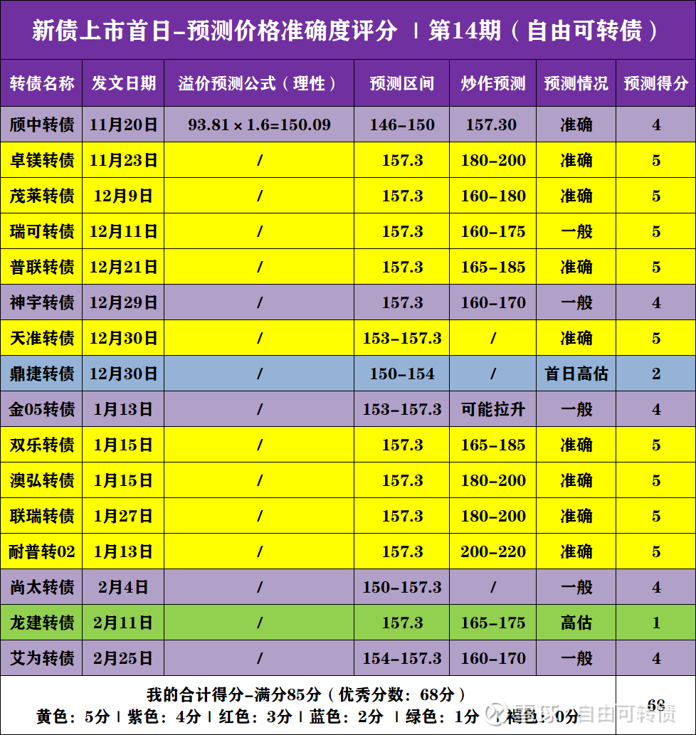 近期预测准确度:中规中矩,谨慎参考。 预测准确度评价权重:最高权重为转债上市当天最高价,第二权重为上市当天收盘价与其他。