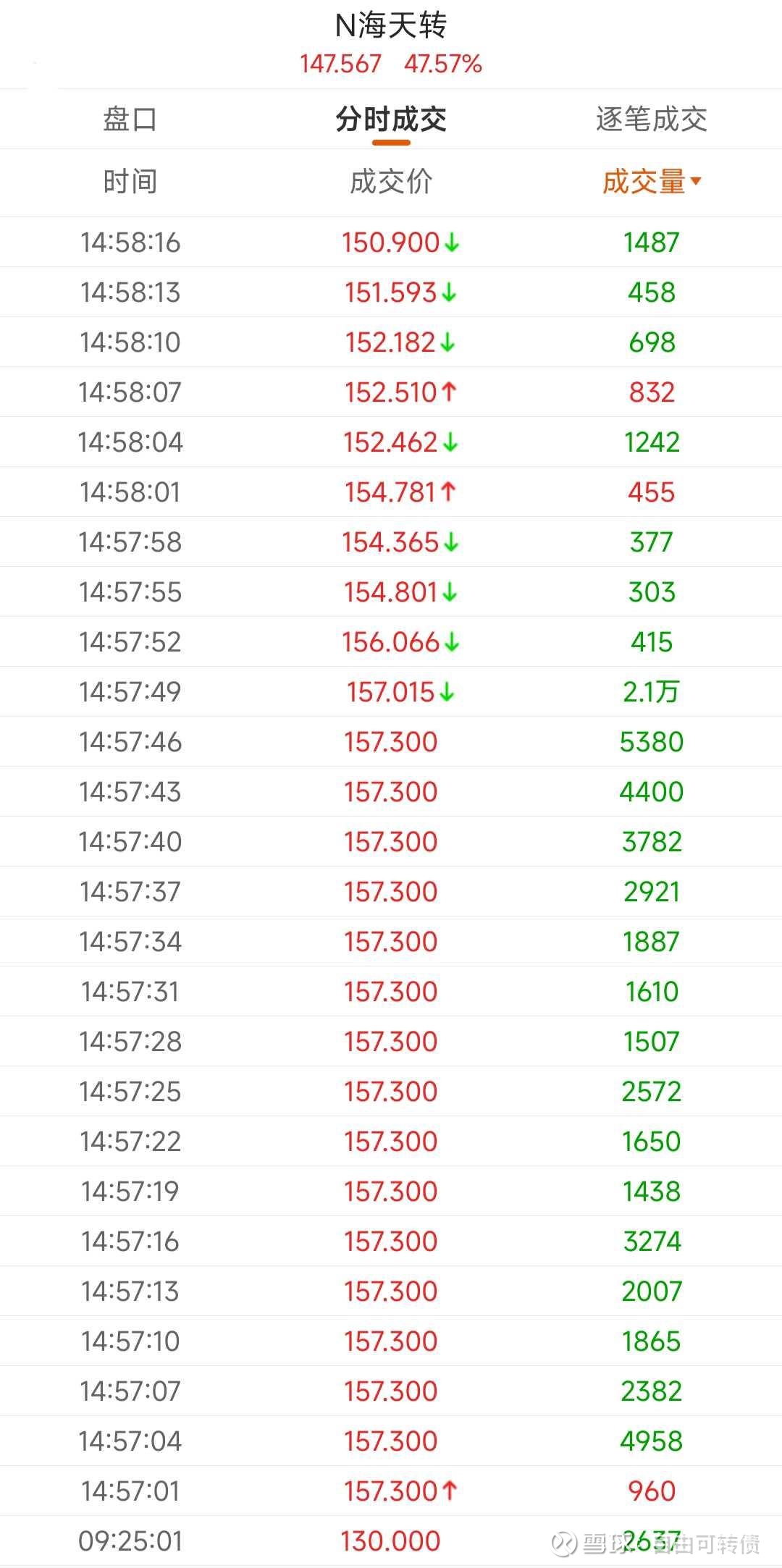 (海天转债有大约46秒的时间,能以最高价格卖出,后续开始回落。目前整体行情还要更差,该转债存在冲高时间更短,回落速度更快的可能。)