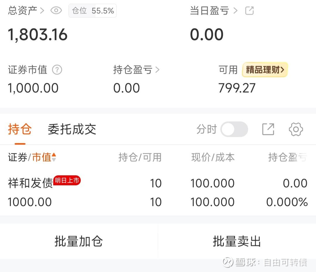 我有中签“祥和转债” 预测标准:市场行情+正股行业+转股价值+流通规模+发行规模(主观为主+客观为辅)