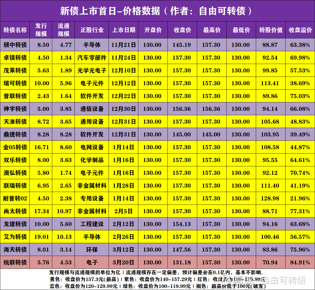 价格预期:前5大股东配债,流通规模约1.89亿。下午14:57复盘后冲至最高价157.3元,若能稳住最高价收盘,上市第二日大概率继续冲高至165-180元。