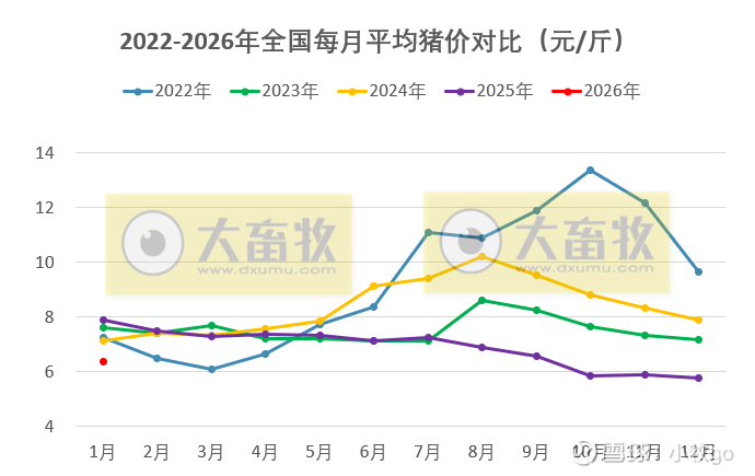 在2022-2026年期间相比,2026年1月猪价低于前4年同期。