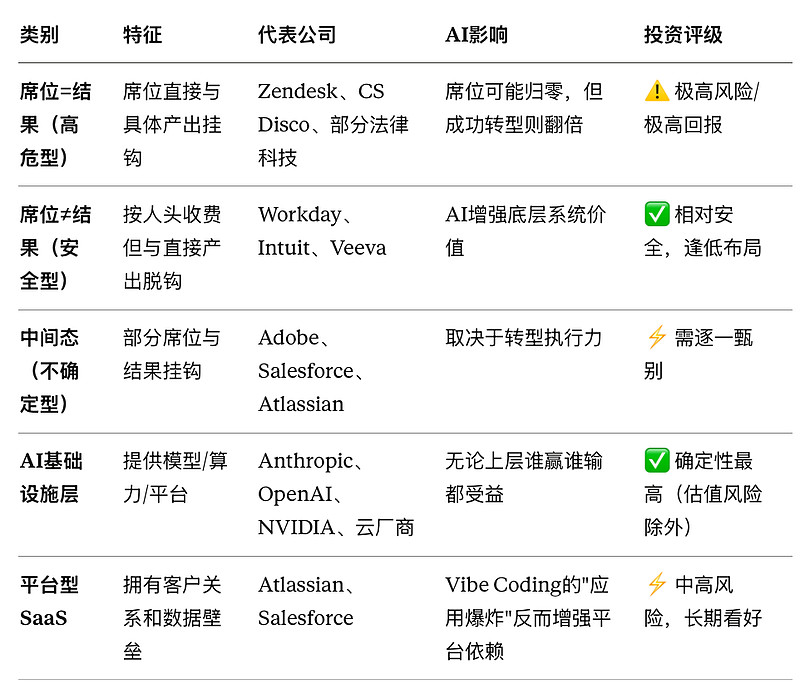├→ 第一类SaaS(席位=结果):生存级威胁,默认归零