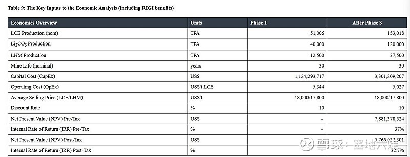 $赣锋锂业(SZ002460)$ $Lithium Argentina(LAR)$ 刚刚发布了ppgs盐湖更新后的技术报告;一期五万吨产能,11亿的资本开支运营成本5344美元每吨,开采30年,10%的折现率下有32%的irr,还是很不错了。就是这个前期建设成本实在是高,lar还得靠赣子输血,这项目全赣子自己掏钱够呛,得拉人合伙了