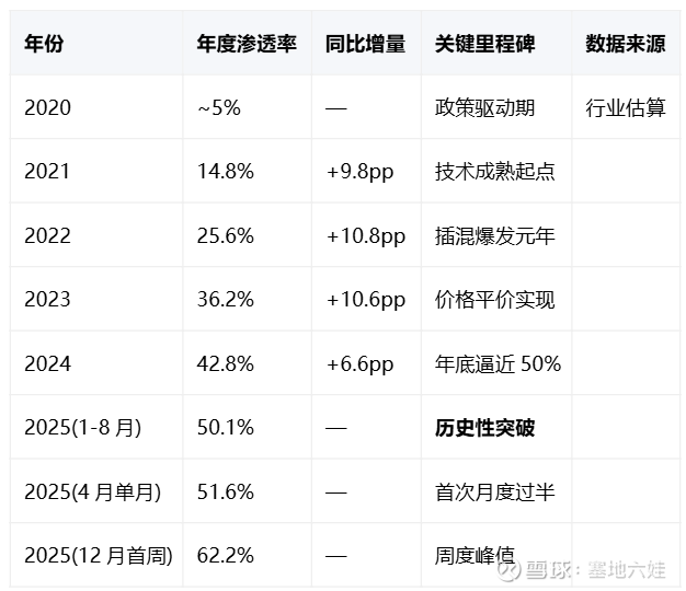 表1:中国新能源汽车渗透率演进轨迹(2020-2025年)