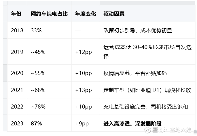 表2:中国网约车市场纯电动车占比演进(2018-2023年)