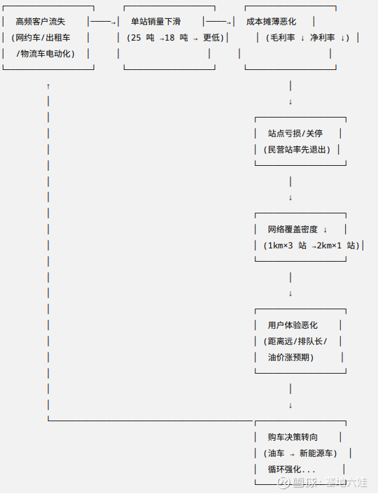 加油站作为基础设施网络,其经济价值高度依赖于规模效应的实现与维持。这一模式的脆弱性在客户结构恶化情境下被急剧放大,形成典型的"死循环"困境。